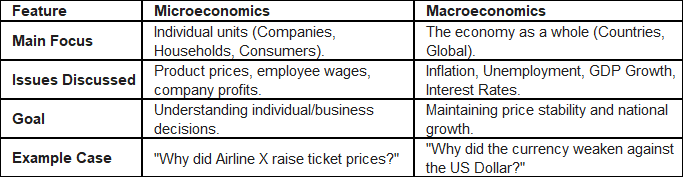 In the context of a country, macroeconomics doesn't look at the finances of just one company (like looking at Apple or BCA’s financial statements), but rather the economic health of a country or the world globally.